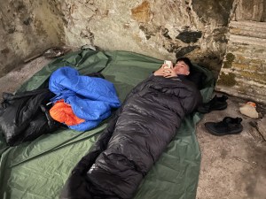 Fearing for the integrity of our poor tarp we hunkered down in a barn, consigned to sleep on a concrete floor, but protected from the wind and impending rain.