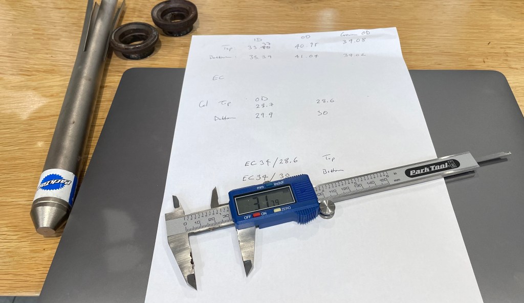 First step was to invest in some bike tools, and Park Tool have a very good reputation. I purchased the home mechanic bike stand (my back thanks my already), a set of tools, as well as digital callipers. The callipers are required for this sort of project, drastically increasing the chances of ordering parts that will actually fit this ageing frame!