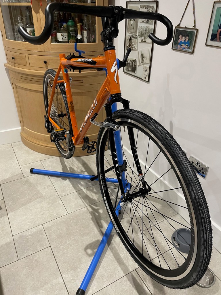 I’m really happy with the PNW Components Coast Handlebar and the long-pull Gevenalle GX Shifters. The bars are nice and wide for stability, offer lots of hand positions, and the shifters are easy to reach. The flare on the bars gives the bike a more aggressive “gravel” look, while the drop is fairly shallow which I hope will make for comfortable all day riding.