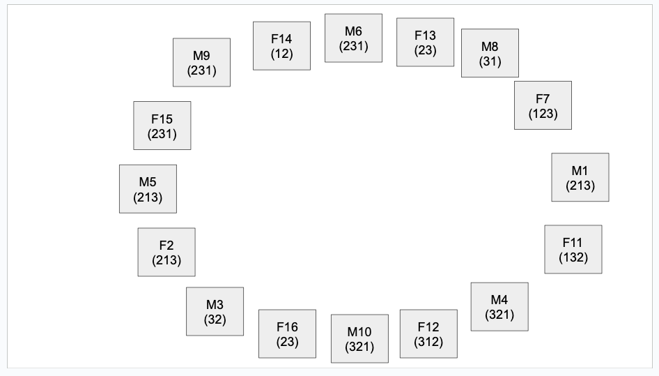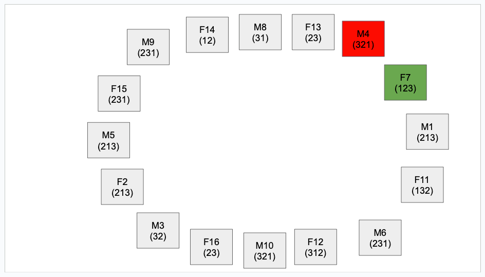 It placed F7 “first” and M4 “last” failing to account for the fact that the table is circular, effectively making them neighbours.