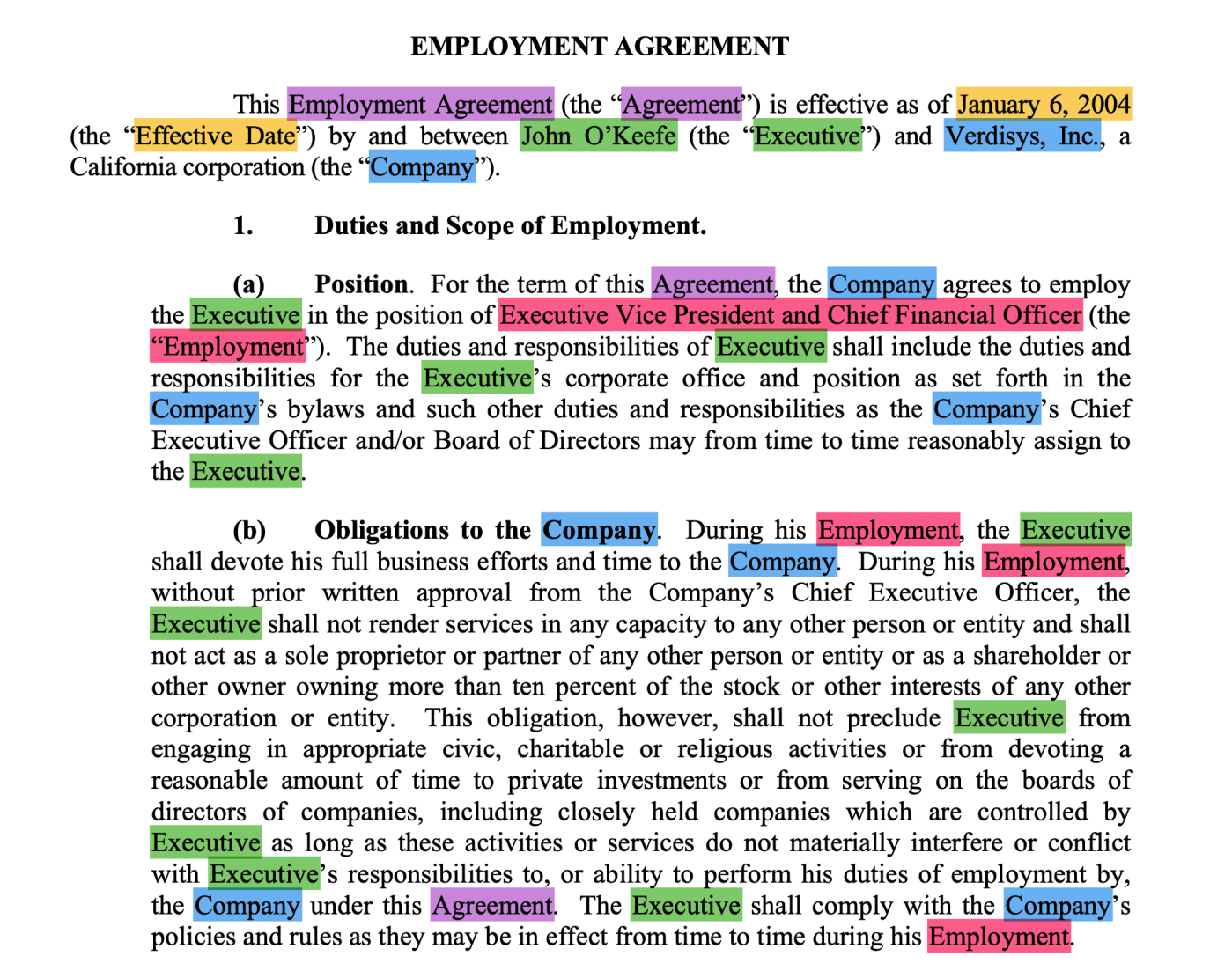 To illustrate and make concrete the issues I am going to use a real employment contract, available on the SEC website.